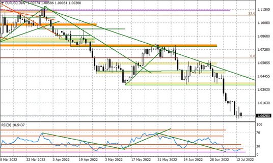 Dzisiaj po raz kolejny notowania EURUSD zjechały w okolice parytetu. Chęci na jego wyraźne złamanie jednak nie widać, co może skłaniać do zastanowienia się nad alternatywnym scenariuszem korekty wzrostowej. W przyszły czwartek mamy posiedzenie Europejskiego Banku Centralnego na którym zainicjowany zostanie cykl podwyżek stóp procentowych. Oczekiwania rynków kształtują się na poziomie ruchu o 25 punktów bazowych teraz i 50 punktów we wrześniu (nie wchodząc w szczegóły, co będzie na jesieni). Niewykluczone jednak, że wzorem innych banków centralnych, także ECB mógłby zdecydować się na większy ruch, zwłaszcza, że euro jest słabe. Zgoda, że jest strach przed recesją, ale we wrześniu będzie on większy, niż teraz, a wtedy spodziewana jest podwyżka o 50 punktów bazowych. Tym samym spekulacje wokół ruchu ECB mogłyby stać się w przyszłym tygodniu pretekstem do odbicia EURUSD nawet w stronę kluczowego oporu przy 1,0350.