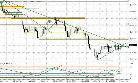 Jeżeli pokażą one jej spadek, to rynki nie będą pewne tego, czy FED zdecyduje się we wrześniu podnieść stopy procentowe o kolejne 75 punktów bazowych. Zwłaszcza, że nie brak opinii, że posunięcia Rezerwy Federalnej mogą doprowadzić do wyraźnej recesji w gospodarce, tym samym o tzw. "miękkim lądowaniu" będzie można zapomnieć. Tym samym - niższa inflacja oznaczałaby osłabienie się dolara i kontynuację zwyżek na giełdach. Te wczoraj zostały przerwane - indeksy na Wall Street lekko się cofnęły, ale nadal sytuacja techniczna pozostaje dobra.