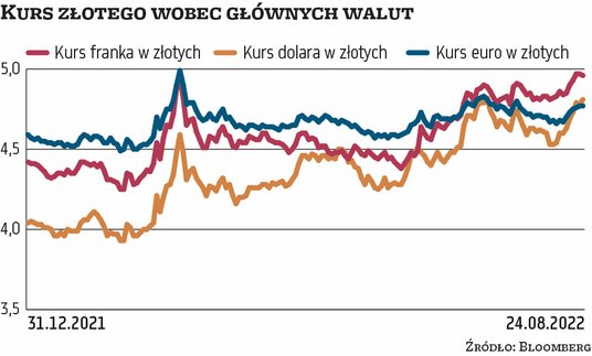 Jeszcze na początku br. za franka było trzeba zapłacić ok. 4,40 zł, wyraźnie mniej niż za euro, które kosztowało wtedy niemal 4,60 zł. Szwajcarska waluta, ciesząca się na globalnym rynku finansowym statusem bezpiecznej przystani w okresach zawirowań, wyraźnie umocniła się bezpośrednio po ataku Rosji na Ukrainę pod koniec lutego. Wiosną, gdy strach nieco opadł, frank stracił blask, aby odzyskać go w czerwcu.