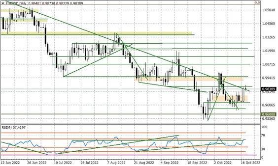 Poniedziałek przyniósł ruch w górę na EURUSD, który zaczyna wpisywać się w tezę o rozpoczynającej się większej korekcie ostatnich zniżek. Nadal aktywni są przedstawiciele Europejskiego Banku Centralnego, choć to dopiero czwartek 27 października, pokaże jak silna jest pozycja "jastrzębi" domagających się całej serii zdecydowanych podwyżek stóp procentowych. Zwłaszcza, że maleje tzw. zagrożenie kryzysem energetycznym i głęboką recesją w strefie euro - widać to chociażby po szybko taniejących cenach gazu.