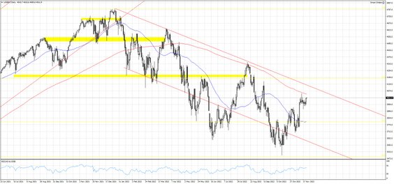 Dolar oddaje zyski z początku tygodnia i notowania EURUSD wychodzą powyżej 1.03. Zmienność na rynku walutowym nie jest jednak duża. Na uwagę zasługuje dolar nowozelandzki, który zyskał po podwyżce stóp procentowych o 75 punktów bazowych. Para NZDUSD wychodzi powyżej 0.61. RBNZ podniósł także docelowy poziom stopy procentowej do 5.5% z 4.1% i obecnie spodziewa się recesji w przyszłym roku, która dopiero ma spowodować spadek inflacji. Komunikat RBNZ był zdecydowanie bardziej jastrzębi od oczekiwań.
