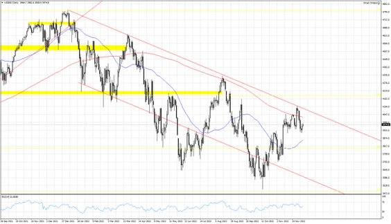 Choć ostatnie dane z USA przebiły prognozy rynkowe, to jednak ostatnie komentarze przedstawicieli FOMC oraz protokół z ostatniego posiedzenia wyraźnie sugerował, że dojdzie do spowolnienia tempa zacieśniania monetarnego. Perspektywa tego powinna sprzyjać ożywieniu popytu na ryzyko. Szczególnie, że z Chin napływają kolejne sygnały o luzowaniu polityki zero-covid, co poprawia perspektywy wzrostu w tamtym rejonie świata. Rynek pozytywnie odebrał też dzisiejsze dane o listopadowej inflacji w Chinach, która spadła do 1.6% r/r z 2.1% r/r przed miesiącem, co powinno dawać przestrzeń do większego wsparcia gospodarki ze strony polityki monetarnej.