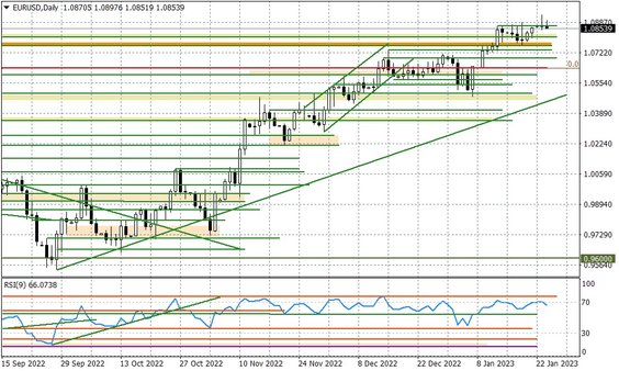 Kolejne "jastrzębie" komentarze ze strony Christine Lagarde nie przestają być wsparciem dla euro. Rynek chce teraz zobaczyć fakty, czyli na ile w komunikacie EBC po posiedzeniu 2 lutego pojawią się sugestie utrzymania tempa podwyżek o 50 punktów baz. Zwłaszcza, że ECB (co było do przewidzenia biorąc liczebność tego gremium) wcale nie musi być jednomyślny.