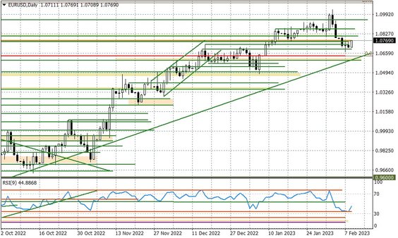 To tłumaczy dlaczego teraz dolar nie przejmuje się zbytnio wypowiedziami przedstawicieli FED - parafrazując można stwierdzić, że w ostatnich miesiącach to rynek, a nie oni, miał rację, co do procesu wygaszania podwyżek stóp procentowych. Dzisiaj najmocniejsze w zestawieniach są waluty Antypodów, korony skandynawskie, oraz funt, co wpisuje sie w powrót trybu risk-on na rynki. Wczorajszy bilans dla Wall Street był wprawdzie mieszany, ale indeksy pozostają wysoko i widoczny w ostatnim czasie trend wzrostowy nie jest zbytnio zagrożony. Dzisiaj nad ranem obserwowaliśmy nieco podwyższoną zmienność na parach z jenem. To efekt plotki, jakoby w rzadzącej LDP premiera Kishidy miałyby pojawić się duże podziały, co do ewentualnej nominacji bardziej "jastrzębiego" Hirohide Yamaguchi'ego na następnego szefa Banku Japonii. Jeżeli to prawda, to szanse na wybór "gołębiego" Amamiya znacznie rosną, co może być sygnałem do korekty umocnienia się jena z ostatnich tygodni na wielu relacjach. Na razie jednak rynek podchodzi do tych spekulacji, jak do szumu, który się ignoruje, a sam USDJPY dzisiaj nieznacznie spada.
