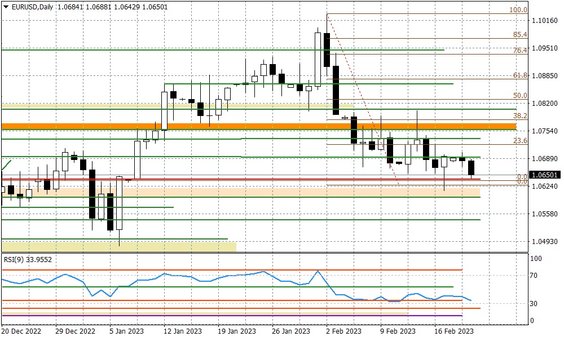Lepszy odczyt indeksu ZEW dla Niemiec, który w lutym wzrósł do 28,1 pkt. z 16,9 pkt. nie zdołał zrównoważyć mieszanego odczytu indeksów PMI - słabość w przemyśle może stanowić argument dla tych, którzy uważają, że ECB nie podniesie w tym roku stopy depozytowej powyżej poziomu 3,50 proc. (obecnie 2,50 proc.), co sprawia, że wątek stóp procentowych jest w zasadzie rozegrany w notowaniach euro.