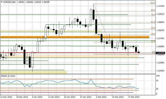 Indeks Ifo obrazujący nastroje w niemieckim biznesie nie przyniósł już pozytywnego zaskoczenia w lutym - jego wartość to 91,1 pkt. wobec spodziewanych 91,2 pkt. i 90,1 pkt. po korekcie w styczniu. Negatywnie waży ocena bieżącej sytuacji (cofnięcie do 93,9 pkt.), podczas kiedy nadal dobrze wypadają przyszłe oczekiwania (88,5 pkt.). To kolejne dane po wczorajszym indeksie PMI dla przemysłu, które mogą dać do myślenia w temacie dalszych podwyżek stóp przez ECB. Decydenci mogą być bardziej pragmatyczni w podejściu, co może sprawić, że oczekiwania, co do wzrostu stopy depozytowej ponad 3,50 proc. (obecnie 2,50 proc.) mogą być mało sensowne. A to, co już wiadome, to jest zdyskontowane w kursie EUR. To dolar teraz się dostosowuje do potencjalnych zaskoczeń w wydaniu FED, co zresztą widać po jego korelacji z rentownościami amerykańskich obligacji.