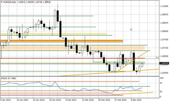 EURUSD korzysta z faktu redukcji oczekiwań, co do agresywnego podejścia FED - szanse na ruch o 50 punktów baz. w marcu zeszły w okolice 50 proc. - choć ważne dane z amerykańskiego rynku pracy jeszcze przed nami (godz. 14:30). Czy jednak będą w stanie odwrócić trend na tyle, że rynek znów będzie miał mocne przekonanie, co do tego, że FED pozostanie zdeterminowany w walce z inflacją? Zresztą we wtorek poznamy dane CPI za luty. Co one pokażą?