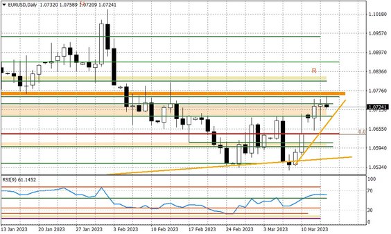 Agencja Reuters podała powołując się na wysoko postawione źródła, że decydenci w Europejskim Banku Centralnym uważają, że rezygnacja z 50 punktowej podwyżki stóp na rzecz mniejszego ruchu na jutrzejszym posiedzeniu, byłaby podważeniem ich wiarygodności - bo skoro inflacja jest wysoka i deklaracje w ostatnim czasie były jasne, to nie ma mocnego powodu, aby to zmieniać. Teoretycznie tak, bo faktycznie nie ma prostych zależności pomiędzy kryzysem bankowym w USA, a sytuacją europejskich instytucji finansowych. Ale to czego nie widać bezpośrednio, można już dostrzec pośrednio. Mowa o trudnej sytuacji niektórych europejskich banków, która ma miejsce już od długiego czasu. Ale teraz ryzyko, że inwestorzy zaczną "obstawiać" tak zwane słabe ogniwa, może być większe. Wracając jednak do samego ECB - decydenci w Europie już nieraz pokazali, że są mniej elastyczni i wolą trzymać się sztywnych ustaleń. Być może teraz czasu jest rzeczywiście mało i podwyżka o 50 punktów baz. na jutrzejszym posiedzeniu zostanie "dowieziona", ale nie oznacza to, że będzie to pozytywny impuls dla euro. Może, ale nie musi - zwłaszcza w sytuacji, kiedy rynki zaczną mocno upierać się przy tym, że kolejne ruchy będą już po 25 punktów baz. i zaczną interpretować wypowiedzi przedstawicieli ECB pod kątem tego właśnie scenariusza.