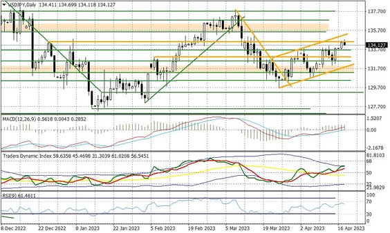 Dzisiaj rano ciekawsze informacje mamy z Chin, Australii i Japonii. Wzrost gospodarczy w Państwie Środka wyniósł w I kwartale 4,5 proc. r/r (i tu mamy zaskoczenie na plus), ale w ujęciu k/k było to 2,2 proc. jak zakładano. Dodatkowo mieszane dane dostaliśmy w temacie marcowej dynamiki sprzedaży detalicznej, produkcji przemysłowej i inwestycji w aglomeracjach. Jest, zatem dobrze, ożywienie w chińskiej gospodarce jest potwierdzone, ale szału nie ma. Z kolei w temacie Australii mowa o zapiskach z ostatniego posiedzenia RBA, które pokazały, że decydenci raczej zdecydowali się tylko na pauzę w podwyżkach, a nie zakończenie cyklu, co oddala rynkową perspektywę dla obniżek. Zaskoczenie jest duże, stąd też AUD jest dzisiaj w czołówce zyskujących walut. Niemniej sytuacja techniczna na AUDUSD pozostaje trudna. Trzeci temat to jen, a konkretnie przecieki przed zaplanowaną na przyszły tydzień publikacją perspektyw gospodarczych Banku Japonii. Jak podała agencja Jiji inflacja w roku fiskalnym 2025 ma spaść do 1,6-1,9 proc., a więc zejść poniżej celu 2,0 proc. To nieco redukuje oczekiwania, co do szybszego wyjścia z ultra-luźnej polityki monetarnej. Efekt - dzisiaj jen nie zyskuje, a w relacji USDJPY pozostaje stabilny mimo słabości dolara na szerokim rynku.
