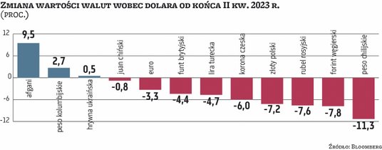 Wśród walut, którym udało się od początku trzeciego kwartału umocnić wobec amerykańskiej, są niemal wyłącznie waluty z małych rynków. Wśród nich znalazły się m.in. ukraińska hrywna (+0,5 proc.) i mołdawski leu (+0,4 proc.).