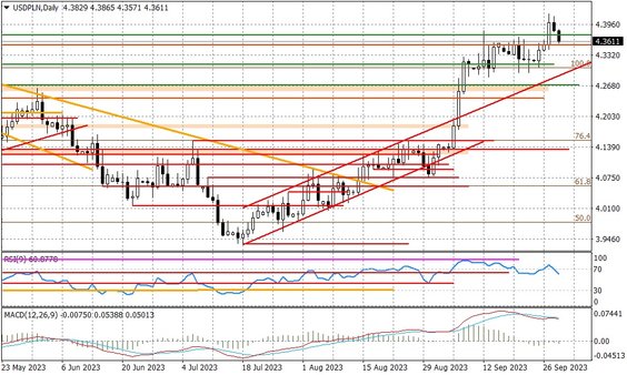 To wszystko doprowadziło do osłabienia się dolara na szerokim rynku, które jest dzisiaj kontynuowane - EURUSD wyszedł ponad poziom 1,06, czyli jest blisko figurę wyżej, niż wczoraj rano. Na tym tle korzysta złoty, chociaż nie tak, jakby mógł. EURPLN cofnął się od wczorajszego popołudnia tylko o grosz do 4,6230, podczas kiedy USDPLN skorzystał na ruchu EURUSD i spadł poniżej 4,36. Wydaje się, że złoty jest nieco sceptyczny ze względu na zbliżające się posiedzenie RPP - 4 października. Wprawdzie prezes Glapiński ponad 2 tygodnie temu zasugerował, że przestrzeń do dalszych obniżek stóp w krótkim terminie może być ograniczona, to jednak rynek ma pewne obawy. Oczywiście brak cięcia stóp teraz, byłby mocniejszym wsparciem dla złotego zakładając, że lepsze nastroje na globalnych rynkach utrzymają się także w przyszłym tygodniu.