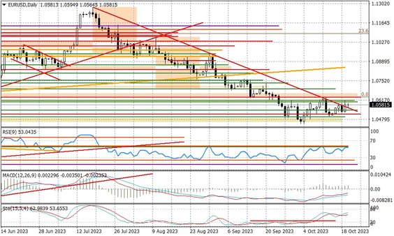 Doprowadziły one finalnie do spadku indeksów, które wcześniej zostały wsparte wystąpieniem prezesa FED, które miało miejsce w Klubie Ekonomicznym w Nowym Jorku. Jerome Powell powtórzył formułkę o tym, że wysokie rentowności obligacji sprawiają, że polityka monetarna jest już restrykcyjna, a z kolei wzrost ryzyka geopolitycznego na świecie spowodował, że FED musi być bardzo ostrożny z kolejnymi posunięciami. Odebrano to jako sygnał, że stopy procentowe bardziej już nie wzrosną. To jednak za mało, aby wywołać większą falę optymizmu - taką byłoby otwarcie furtki do dyskusji o ewentualnych obniżkach stóp, ale na to jest jeszcze zbyt wcześnie. Niemniej dolar, który stracił po słowach Powella po godz. 18:00, nie odrobił później całkowicie tego ruchu. Finalnie, zatem widzimy dzisiaj, że amerykańska waluta zyskuje dzisiaj na szerokim rynku za sprawą rosnącego ryzyka geopolitycznego, to jednak w niektórych relacjach dolar jest tańszy, niż wczoraj o tej samej porze. Czy to może się zmienić?