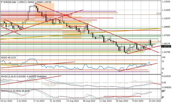 Indeks nastrojów w niemieckim biznesie, jaki poznaliśmy dzisiaj rano nie wypadł jakoś źle. W październiku odnotowaliśmy lekkie odbicie głównego wskaźnika do 86,9 pkt. przy jednoczesnej poprawie jego dwóch składowych - oceny bieżących warunków i szacunków na przyszłość. Nie znalazło to jednak przełożenia w podbiciu euro - taki efekt był bardzo krótki i nie zdołał się utrzymać. Dlaczego? Wytłumaczeniem są wzrosty dolara na szerokim rynku, których dynamika zaczyna nabierać tempa. Niewykluczone, że wracają obawy, co do rozpoczęcia przez Izrael operacji lądowej w Strefie Gazy już w perspektywie kilkudziesięciu godzin - a więc znów kluczowa staje się geopolityka i dolar. A sytuacja w strefie euro? Dla rynków jest mało ciekawa - tak też może być z jutrzejszym posiedzeniem Europejskiego Banku Centralnego. Inwestorzy dostaną raczej potwierdzenie tego, że cykl podwyżek się zakończył, a decydenci będą teraz obserwować sytuację w temacie perspektyw inflacji, oraz sytuacji w gospodarce w obliczu rosnącego ryzyka geopolitycznego. To nie pomoże euro.