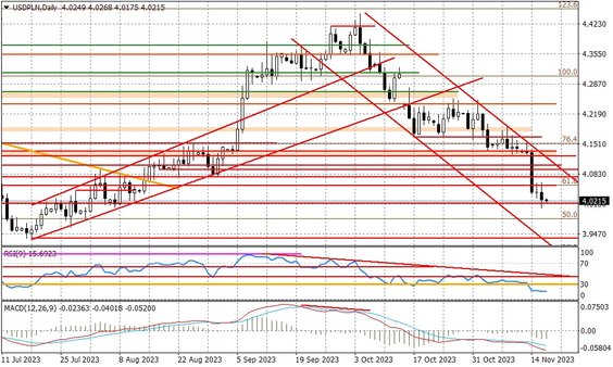 W piątek o poranku notowania EURPLN oscylują wokół 4,3650 - do naruszenia wsparcia przy 4,3750 doszło jeszcze wczoraj. Z kolei USDPLN nie dotknął bariery 4,00 i pozostaje rano wokół poziomu 4,0200. Czynniki krajowe są wciąż takie same - to "jastrzębia" narracja wokół podejścia RPP w temacie stóp procentowych w najbliższych miesiącach, oraz spekulacje wokół wątku KPO, choć realnie unijne środki mogłyby popłynąć raczej nie wcześniej, niż w styczniu, czy lutym.
