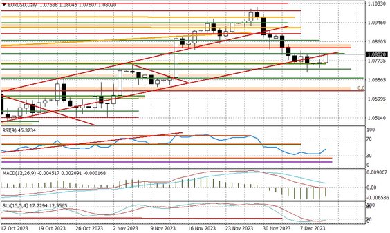 Wspomniane dane CPI z USA poznamy o godz. 14:30. Kluczowa będzie inflacja bazowa (core), która według oczekiwań pozostała w listopadzie na poziomie 4,00 proc. r/r. Oczywiście niższy odczyt - nawet o 0,1 p.p - może doprowadzić do euforii, podobnie jak to było miesiąc temu. Za nami dane z brytyjskiego rynku pracy, które w zasadzie zmieściły się w prognozach ekonomistów i tym samym nie wpłynęły znacząco na oczekiwania, co do polityki Banku Anglii w przyszłym roku, oraz samego funta. Niemniej warto będzie śledzić komunikat po posiedzeniu BOE w czwartek ze względu na ewentualne wskazówki, co do szybszej zmiany nastawienia w 2024 r. Przed nami poza wspomnianymi danymi CPI z USA jeszcze indeks ZEW z Niemiec. Ankietowani nie wykluczają lekkiego pogorszenia się nastrojów wśród niemieckich analityków w grudniu - do 8,7 pkt.