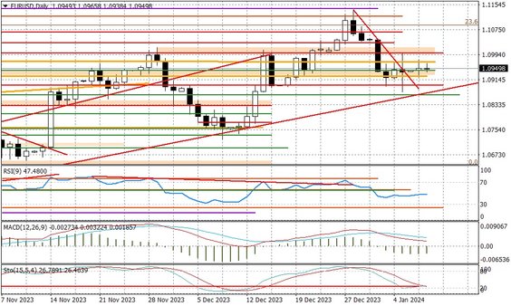 Mimo poniedziałkowych wahań na EURUSD, technicznie sytuacja wiele się nie zmieniła. Popyt nie ma zbytnio siły, aby wybić się ponad opory przy 1,0980-1,1000. Teoretycznie można by przyjąć założenie, że podaż "wyczerpała" się w piątek w okolicach 1,0875, gdzie nieco niżej przebiega kluczowa w średnim terminie, linia trendu wzrostowego. Wtedy najbliższe dni powinny przynieść mocniejsze odreagowanie w górę. Brak siły na taki ruch, może jednak przełożyć się na to, że to podaż szybko przejmie kontrolę i w najbliższych dniach połamane zostałyby średnioterminowe wsparcia. Z punktu widzenia kalendarza makro, to dniem podwyższonej zmienności, powinien być czwartek.