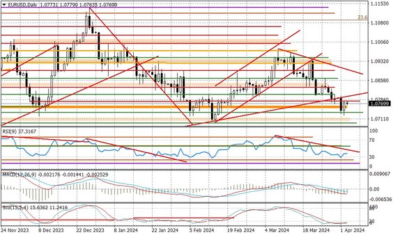 Czy wczoraj po południu i wieczorem mieliśmy do czynienia z ruchem powrotnym na EURUSD? Teoretycznie ten mógłby mieć miejsce nawet do okolic 1,08 - wczorajsze maksimum wypadło przy 1,0778. Dzisiaj rynek nie chce jednak zbytnio spadać, co pokazuje, że inwestorzy czekają na odczyty makro - w strefie euro HICP o godz. 11:00 i dalej o godz.14:15 ADP w USA, oraz ISM dla usług o godz.16:00. Teoretycznie jednak wątek oczekiwań dotyczący ruchów EBC i FED na stopach, zdaje się wciąż faworyzować dolara. Niewykluczone jednak, że inwestorzy będą czekać z "rozstrzygnięciem" aż do piątkowych danych Departamentu Pracy USA.