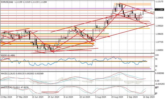Wczorajsze cofnięcie się EURUSD po danych z USA nie doprowadziło do zejścia poniżej 1,11, która to bariera staje się teraz kluczowym wsparciem. Dzienne wskaźniki są ustawione pro-wzrostowo, co zdaje się nadal sugerować możliwy scenariusz w postaci podbicia do szczytów z końca sierpnia przy 1,12.