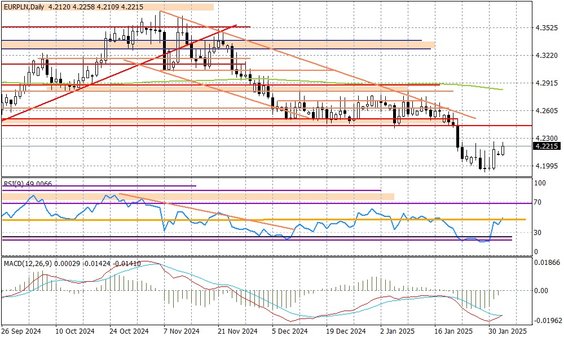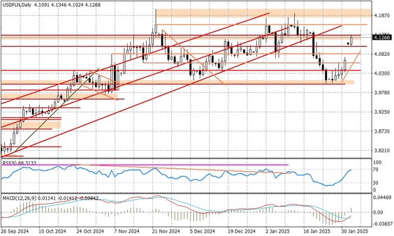 Co dalej? Teoretycznie decyzja ws. ceł wobec Kanady i Meksyku nie weszła jeszcze w życie - ma to mieć miejsce od jutra (4 lutego), więc teoretycznie możemy mieć tzw. rozmowy ostatniej szansy i taryfy zostaną cofnięte. To jednak wydaje się być mało prawdopodobne biorąc pod uwagę retorykę Trumpa, a także ogłoszone przez Kanadę cła odwetowe. Tym samym wojna handlowa się rozpocznie i będą do niej dołączane kolejne kraje. Dla Polski negatywną informacją byłoby nałożenie ceł przez Trumpa na Unię Europejską. Tym samym mimo, że dzisiaj EURPLN reaguje nieznaczne, to nie oznacza, że ryzyko w kolejnych dniach nie będzie rosło, co będzie się udzielać złotemu. Nadal w większym stopniu reagować będzie USDPLN, jeżeli EURUSD będzie w kolejnych kilkunastu dniach kierować się w stronę parytetu. Lepsze dane z Polski (indeks PMI dla przemysłu wzrósł w styczniu do 48,8 pkt.) nie mają w tym momencie większego znaczenia - jest to pochodna lepszych danych ze strefy euro, ale te mogą ulec pogorszeniu za sprawą globalnej wojny handlowej zainicjowanej przez Trumpa.