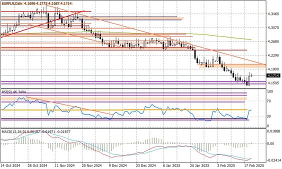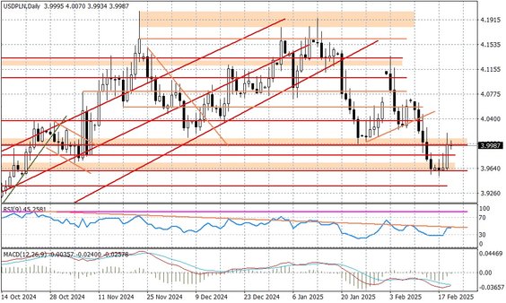To motyw do korekty, której charakter był jednak dość krótkotrwały. Dynamiczny ruch być może się skończył, a obawy o to, że negocjacje pokojowe ws. Ukrainy mogą zostać zerwane, wydają się być przerysowane. Niemniej jest ryzyko, że prezydentowi USA nie uda się zamknąć tego tematu do Wielkanocy i tak też mogli na to liczyć bardziej spekulacyjnie nastawieni inwestorzy. Jednak to nie powinno stanowić argumentu za osłabieniem złotego, gdyż tzw. piłka, jest cały czas w grze. Poza wątkiem Ukrainy, który będzie się ciągnął dalej, mamy wciąż "jastrzębią" Radę Polityki Pieniężnej, a spekulacje niektórych jej członków (Ludwik Kotecki), że prezes Glapiński za kilka miesięcy zmieni zdanie i przyklaśnie mocniejszej obniżce stóp procentowych, są wciąż tylko spekulacjami. Wsparciem dla złotego (zwłaszcza USDPLN) może być znów EURUSD, gdyż rejon 1,04 jako wsparcie został właśnie obroniony.