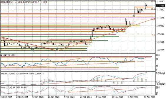 Ostatnia konsolidacja EURUSD, jaka miała miejsce w zeszłym tygodniu okazała się być tylko korektą w biegu. I sytuacja może tak dalej wyglądać, o ile na rynki nie wróci zaufanie do USA (wątpliwe), lub pojawią się mocne werbalne wypowiedzi przedstawicieli największych banków centralnych, którzy nie będą zadowoleni z nadmiernej aprecjacji własnych walut wobec dolara. To już zaczyna przebijać się w Japonii (USDJPY naruszył w nocy barierę 140), na razie milczą przedstawiciele ECB, ale można sobie wyobrazić, że silne euro i perspektywa braku porozumienia z USA ws. ceł po ustaniu 90-dniowego ultimatum, odbiją się czkawką europejskiej gospodarce.
