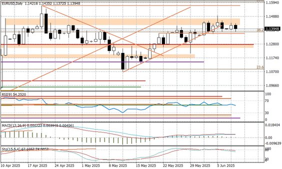 Para EURUSD ponownie wróciła poniżej poziomu 1,14. Technicznie jest to sygnał, że rejon oporu przy 1,1425-75 nabiera na znaczeniu i niewykluczone, że właśnie teraz kształtowane jest prawe ramię w szerokiej formacji M (podwójnego szczytu) - lewy został ukształtowany w maju. Rynek czeka teraz na ważne impulsy - pozytywny obrót spraw w temacie relacji handlowych z Chinami może poprawić sentyment wokół dolara i amerykańskich aktywów, oraz inflację CPI z USA. Doniesienia po kolejnym dniu rozmów w Londynie zaczną spływać wieczorem, podczas kiedy dane CPI poznamy jutro o godz. 14:30. Oczekuje się, że w maju inflacja w USA mogła odbić, ale nieznacznie - do 2,5 proc. r/r i 2,9 proc. r/r dla bazowej. I właśnie to "nieznacznie" może być tu kluczowe. Dla EURUSD ważne poziomy to przytaczany już w komentarzach rejon 1,1350-60. Jego złamanie będzie sygnałem do rozwinięcia szerszej fali umocnienia dolara. Jeżeli taki scenariusz by się pojawił, to będzie mieć wpływ na rynek surowców, gdzie ostatnio pojawiły się mocniejsze ruchy (na niektórych metalach).