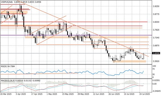 Teoretycznie redukuje ona ryzyko wojny handlowej do której mogłoby dojść po pierwszym sierpnia, a tak podstawowa stawka na europejskie produkty wyniesie 15 proc., choć będą wyjątki gdzie stawki będą wyższe (jak stal i aluminium), oraz tam, gdzie wyniesie ona zero (m.in. półprzewodniki, samoloty, niektóre chemikalia i leki generyczne, czy produkty rolne, oraz surowce krytyczne). Jednocześnie Unia zdeklarowała się zakupić surowce z USA (głównie gaz) za 750 mld USD, co jeszcze bardziej zmniejszy jej zależność od Rosji, zainwestować dodatkowe 600 mld USD w USA, oraz dokonać zakupów amerykańskiego uzbrojenia. To kolejna "asymetryczna" umowa w stylu Trumpa, która tak naprawdę jest wyborem mniejszego zła i potrzebą chwili (dopóki rządzi Trump to raczej nic innego nie uda się uzgodnić). Jak zareagował na to dolar? Para EURUSD idzie w dół schodząc poniżej 1,17. I to tłumaczy zachowanie się złotego - tradycyjnie silniejszy dolar, to słabszy złoty.