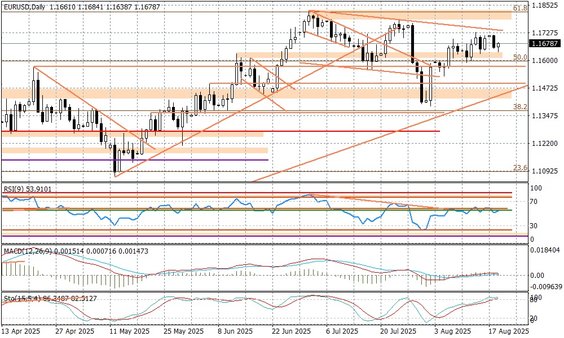 Para EURUSD próbuje nieco odbijać, chociaż dalej pozostaje poniżej kluczowych 1,17. Układ techniczny sugeruje konsolidację aż do piątkowego wystąpienia Powella w Jackson Hole. Dopiero udany atak na linię trendu spadkowego przy 1,1740 mógłby być sygnałem, że możliwe byłoby wybicie tegorocznych szczytów przy 1,1830. Analogicznie zejście w okolice wsparć przy 1,1590-1,1600 i ich naruszenie, może być pretekstem do pogłębienia spadków.