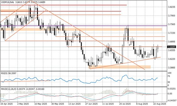 To wynik cofnięcia się EURUSD, który jeszcze wczoraj wieczorem sprawdzał okolice 1,16 wymazując prawie cały ruch wzrostowy z piątku. Spadki obserwowaliśmy też na Wall Street, oraz kryptowalutach. Rynek zachował się tak, jakby nie był pewien tego, co powiedział w piątek Jerome Powell. Tak dla obniżek stóp procentowych, ale co do ich skali to wiele będzie zależeć od bieżących danych? Taka interpretacja nie powinna jednak jakoś szczególnie preferować dolara. No chyba, że rynki widzą tu jeszcze jakiś inny powód. Wczoraj prezydent Trump wezwał publicznie do rezygnacji Lisy Cook z pełnionej funkcji w zarządzie FED, co pokazuje, że obserwowane w zeszłym tygodniu przepychanki będą trwać dalej. Ale nie to może być ważne. Prezydent USA zagroził wczoraj tym krajom, które chciałyby nałożyć podatek cyfrowy na amerykańskie big-techy - w odpowiedzi USA mogłyby nałożyć restrykcje i nowe cła. To może rodzić pewne obawy, co do relacji handlowych. Niemniej wydaje się, że poniedziałkowa korekta na rynkach może finalnie być krótka, gdyż już w czwartek inwestorzy będą reagować na publikowane w środę po sesji wyniki technologicznego giganta, jakim jest Nvidia.