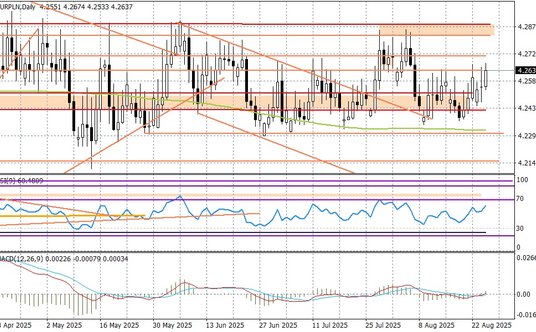 Technicznie EURUSD sprawił, że para USDPLN wybroniła kilkutygodniowy trend wzrostowy. Z kolei na EURPLN pozostajemy wciąż w nudnej konsolidacji 4,23-4,28. Oczekiwania, co do przyszłotygodniowej obniżki stóp przez RPP są podzielone, co do jej skali (25-50 punktów baz.). W kalendarzu kluczowe dzisiaj będą dane z USA dotyczące indeksu zaufania konsumentów Conference Board o godz. 16:00, gdyż przełożą się na zachowanie EURUSD w godzinach popołudniowych.