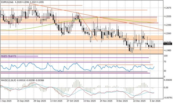 W kraju, jeżeli chodzi o odczyty makro, to mamy pustkę. Więcej wniesie przyszły tydzień, kiedy to poznamy decyzję RPP w sprawie stóp procentowych (cięcie stóp byłoby zaskoczeniem), oraz finalne dane o inflacji za grudzień (w tym też w ujęciu bazowym). Ruch RPP na stopach (obniżka) mógłby zaszkodzić złotemu, podobnie jak fiasko rozmów pokojowych ws. Ukrainy, które jest coraz bardziej prawdopodobne biorąc pod uwagę narrację USA ws. Wenezueli i najnowszy pomysł Donalda Trumpa (wenezuelska ropa za amerykańskie towary), który jest w zasadzie tworzeniem "amerykańskiej kolonii" w Ameryce Południowej.