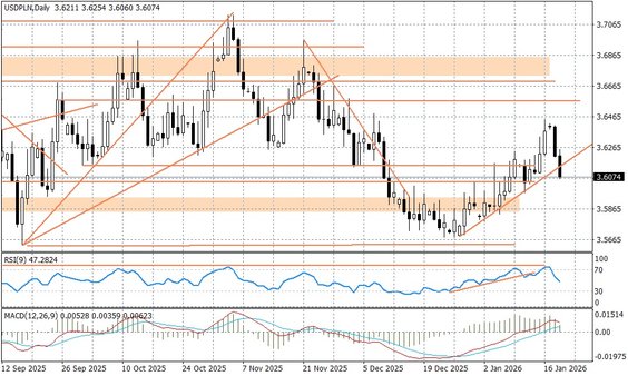 Działania prezydenta USA są oceniane, jako coraz bardziej "irracjonalne" o czym mogą chociażby świadczyć groźby Trumpa o nałożeniu 200 proc. cła na import francuskiego wina do USA w odpowiedzi na odrzucenie przez Macrona zaproszenia do Rady Pokoju formowanej obecnie przez prezydenta USA. Obecnie kluczowe daty są dwie - dzisiaj po południu (godz. 16-17) możliwe jest opublikowanie wyroku ws. prawnej legitymizacji polityki celnej prowadzonej w ostatnich miesiącach przez Donalda Trumpa, oraz zaplanowane na jutro (po godz. 14:30) wystąpienie prezydenta USA na Forum Ekonomicznym w Davos. Teoretycznie sędziowe mogą "powstrzymać" Trumpa, a prezydent USA po spotkaniu z przedstawicielami globalnej finansjery może nieco "przystopować" w swoich groźbach, co może przynieść jakiś krótkoterminowy zwrot na rynkach. Na razie dominuje tryb risk-off w którym mocno traci też dolar - inwestorzy podobnie jak na wiosnę ub.r. uważają, że polityka Trumpa podważa wiarygodność USA. Taka sytuacja paradoksalnie pomaga złotemu - USDPLN cofa się w dół, a EURPLN pozostaje względnie stabilny pozostając nieco powyżej 4,22. Dzisiaj inwestorzy będą uważnie przyglądać się zachowaniu EURUSD, który we wtorek rano naruszał rejon 1,17.