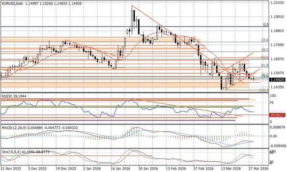 Para EURUSD kontynuuje powolny ruch na południe. Co ciekawe dane o indeksach koniunktury w strefie euro za marzec, jakie zostały opublikowane o godz. 11:00 przez Komisję Europejską nie wypadły jakoś źle. Nie oznacza to jednak, że gospodarki nie odczują skutków wojny w Iranie - ta opóźniona transmisja może stwarzać nowe zagrożenia dla rynków. Zwłaszcza, że to europejska gospodarka pozostanie mocno wrażliwa.