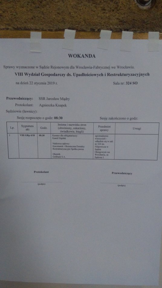 Ciężko powiedzieć czy głosowanie faktycznie ruszyło. Wierzyciele wciąż starają się coś ugrać. Ich rozgoryczenie sięga zenitu. Dobrze, że jesteśmy w sądzie, bo mogłoby dojść do rękoczynów.
