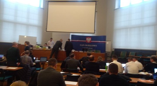 Jeszcze trochę kwestii proceduralnych (a konkretnie sprawdzanie przez sędziego listy obecności).... wszyscy w napięciu czekają jednak na dalszy przebieg wydarzeń.