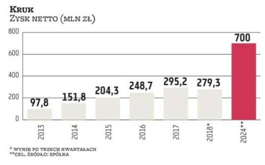 Przedstawiciele Kruka nie ukrywają, że w związku z wyznaczonym celem spółka będzie też więcej inwestowała. – Jeśli mamy zrealizować nasz cel, inwestycje powinny wzrosnąć ponaddwukrotnie – wyjaśnia Michał Zasępa, członek zarządu Kruka. Kolejne portfele wierzytelności firma może nabyć jeszcze w tym roku.