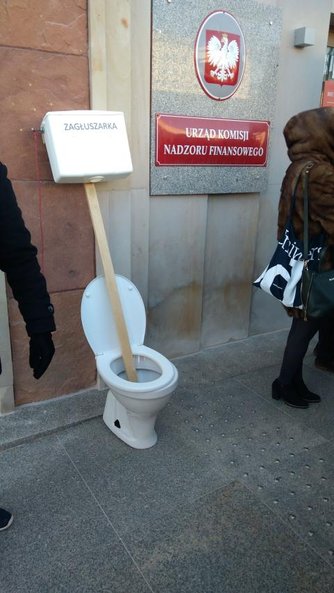 Zgromadzeni nie kryli swojego oburzenia postawą Komisji, ale także i pośredników, którzy sprzedawali im obligacje GetBacku. Praktycznie cały czas przewijało się wśród tłumu hasło „złodzieje". Na jednej z przygotowanych tablic widniał nawet napis „Rząd ze złodziejami, a nie z ofiarami"