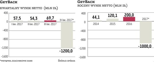 Rynek po raz kolejny nie doczekał się raportu GetBacku za 2017 r. Firma znów przesunęła termin publikacji sprawozdania, tym razem na 21 maja. Mimo to zdecydowała się opublikować wstępny wynik za ubiegły rok. Windykator mógł ponieść stratę netto w wysokości 1 mld zł.