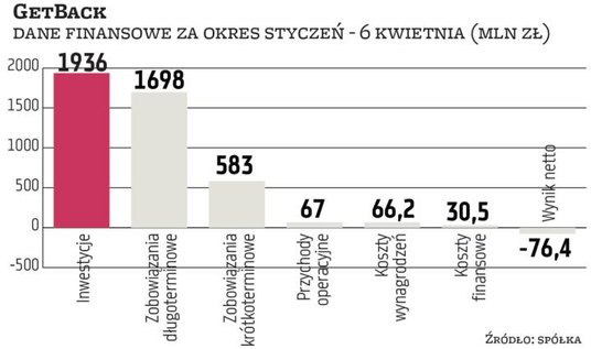 Wynika z nich, że firma w omawianym okresie miała 76,4 mln zł straty. Warto jednak podkreślić, że są to dane na poziomie jednostkowym, dlatego też nie oddają one pełnej sytuacji finansowej spółki. Przykładowo z ostatniego dostępnego raportu GetBacku za okres I–III kw. 2017 r. dowiadujemy się, że na poziomie jednostkowym spółka wykazała 157,6 mln zł zysku netto. Na poziomie skonsolidowanym był to 181,2 mln zł.