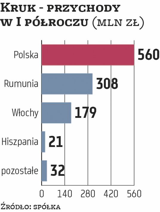 Rynki zagraniczne w Kruku już teraz odgrywają niezwykle istotną rolę. Około połowy spłat i przychodów spółki pochodzi z zagranicy.