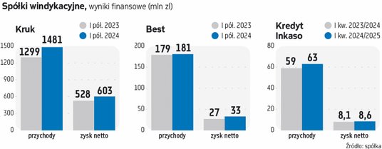 Na wzrostowej ścieżce nadal jest lider branży, wrocławski Kruk. W II kwartale firma miała 265 mln zł zysku netto, a w całym I półroczu 603 mln zł. To o 14 proc. więcej niż rok temu.