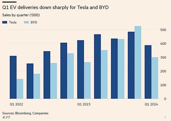 Rozczarowujący kwartał wystarczył Tesli, aby odzyskać koronę od BYD jako największego na świecie sprzedawcy pojazdów elektrycznych, po tym jak chińska firma odnotowała 42-procentowy spadek kwartalnych dostaw pojazdów elektrycznych do 300 114 sztuk.