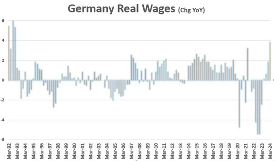 płace realne w Niemczech wzrosły o rekordowe 3,8 proc. rok do roku w ciągu pierwszych trzech miesięcy 2024 r., budząc nadzieje na tak potrzebny impuls w wydatkach konsumenckich w związku ze spowolnieniem wzrostu największej gospodarki Europy.
