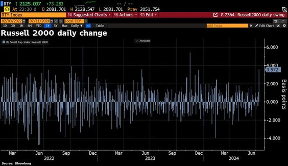 \Według analityków Mizuho „indeks NASDAQ 100 ustępuje Russellowi 2000 o 4,20 proc.”, co oznacza najgorszy dzień NASDAQ w porównaniu z Russellem 2000 od stycznia 2021 r.