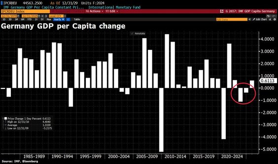 Ta rewizja w dół wynika z obniżki prognoz niemieckiego rządu do spadku o 0,2 proc. w 2024 r. z wcześniej oczekiwanego wzrostu na poziomie 0,3 proc.