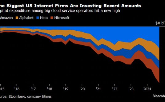 Nakłady kapitałowe czterech największych firm internetowych i zajmujących się oprogramowaniem – Amazon, Microsoft, Meta i Alphabet – wyniosą w tym roku znacznie ponad 200 miliardów dolarów, co będzie rekordową sumą dla rozrzutnego kolektywu. Dyrektorzy obu spółek ostrzegli w tym tygodniu inwestorów, że w przyszłym roku ich szaleństwo będzie kontynuowane, a nawet nabierze tempa.