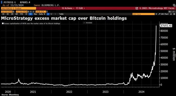 Czwartkowy spadek pokazuje rosnące obawy dotyczące zawyżenia wyceny akcji spółki w związku ze, zdaniem niektórych, zbyt wygórowaną wyceną spółki. Citron Research stwierdził, że inwestowanie w bitcoin jest „łatwiejsze niż kiedykolwiek”, powołując się na fundusze ETF i akcje dostępne na platformach handlowych Coinbase i Robinhood. Citron, który w szczególności wspierał MicroStrategy w 2020 r. jako „najlepszy sposób gry w Bitcoin”, argumentował, że wycena firmy została „całkowicie oderwana” od podstaw bitcoina, mimo że kryptowaluta zbliżyła się do 100 000 dolarów po trzytygodniowym okresie wzrostu na nowych rekordach wszechczasów.