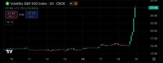 Rynkami wstrząsnął wzrost rentowności obligacji skarbowych po posiedzeniu Fed, a stopy procentowe na rynku obligacji wzrosły po tym, jak projekcje gospodarcze również pokazały, że urzędnicy banku centralnego przewidują, że inflacja w 2025 r. może pozostać niezmienna. Według danych FactSet indeks zmienności Cboe VIX, tak zwany wskaźnik strachu na giełdzie, wzrósł w środę o 74 proc. do 27,6.