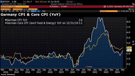 Roczna inflacja w Niemczech wzrosła w grudniu bardziej niż prognozowano ze względu na wyższe ceny żywności i mniejszy niż w poprzednich miesiącach spadek cen energii, jak pokazały w poniedziałek wstępne dane federalnego urzędu statystycznego.
