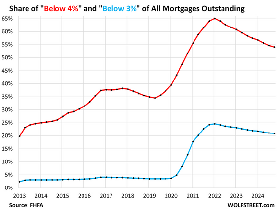 – Fakt, że udział ten wzrósł ponad dwukrotnie z 7,3 proc. do 18 proc. w ciągu nieco ponad dwóch lat, pokazuje, że „zamrożenie” kończy się, gdy życie się zmienia: zmiana pracy wymagająca przeprowadzki, potrzeba większego lub mniejszego domu, chęć przeprowadzki bliżej dzieci. Śmierć, rozwód, małżeństwo, klęska żywiołowa… to wszystko powody, dla których 3-proc. kredyty hipoteczne muszą zostać spłacone. Inni właściciele domów decydują się sprzedać dom, aby „zamrozić” swoje ogromne zyski, spłacić kredyt hipoteczny i odejść z górą gotówki do zainwestowania, płacąc czynsz zamiast kosztów posiadania domu – stwierdza Wolf Richter.